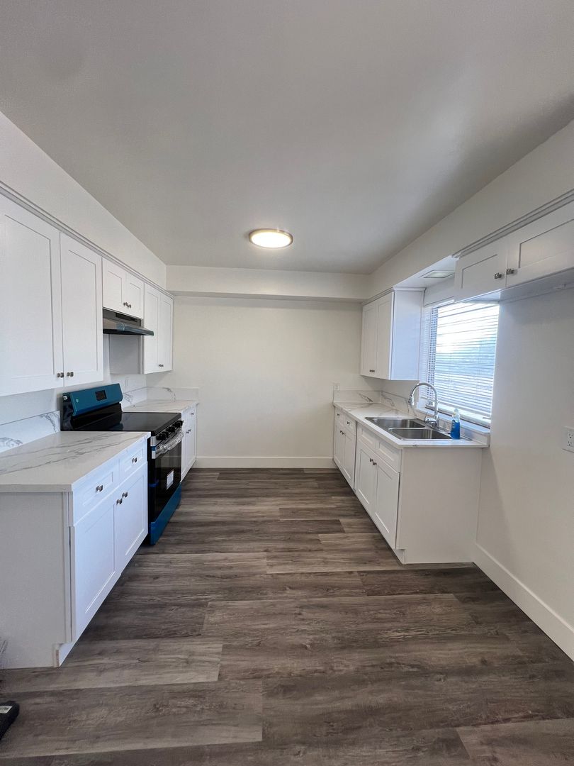 This beautifully updated two-bedroom, one-bathroom upstairs apartment offers the perfect mix of comfort and modern living. Step inside to find a fresh, contemporary design featuring new kitchen cabinets and countertops and a newly installed bathroom vanity that adds a stylish touch to your space.