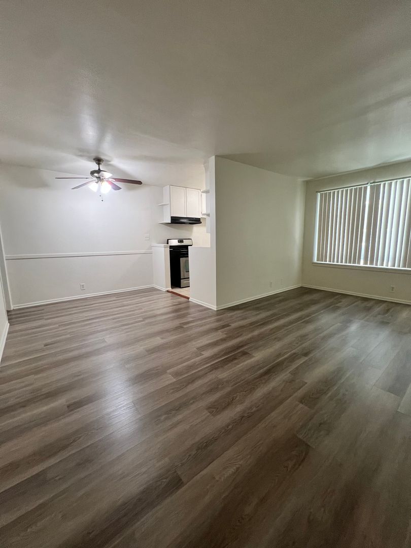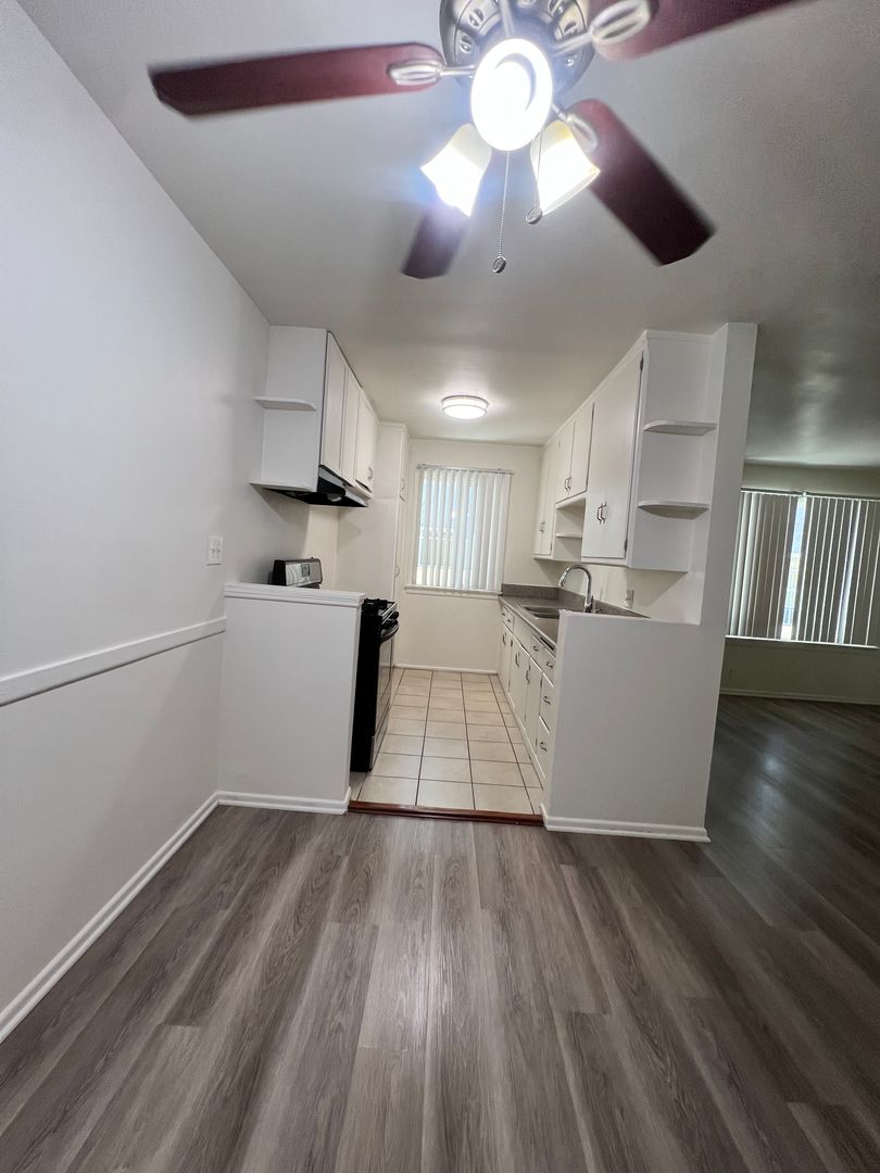 Welcome to your new home in the heart of Los Angeles! This first-floor, one-bedroom, one-bathroom apartment offers a bright and spacious layout with a large bedroom and new laminated flooring throughout. The kitchen features a stainless steel stove with stylish tile flooring, combining modern design with everyday functionality.